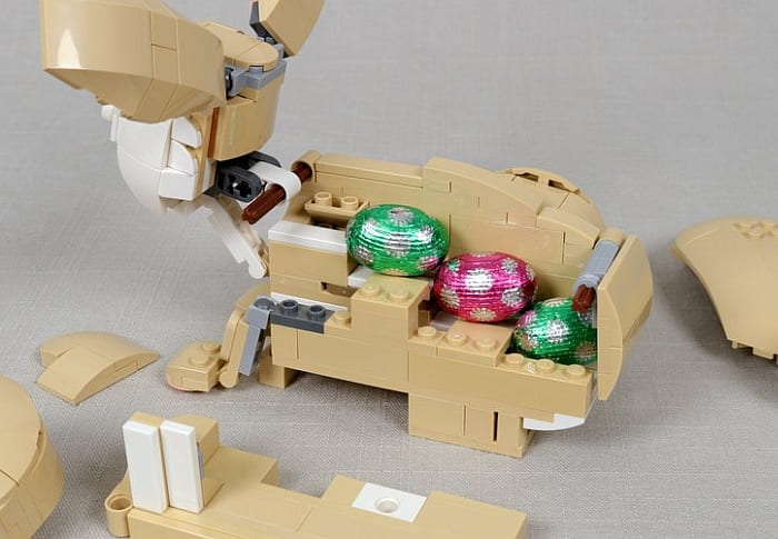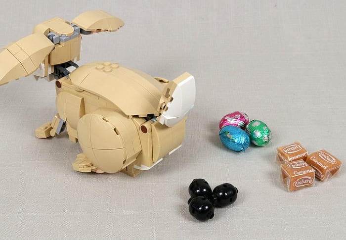 The instructions show how you can make some LEGO pellets to use for ‘poop’, but you can also use regular Easter candies. The model is designed to hold three candies, but it could hold more smaller ones. Just be aware that the risk of it jamming increases if you do so. Obviously, the candies can’t be too large either. In the video below, Jason demonstrates how the bunny works.