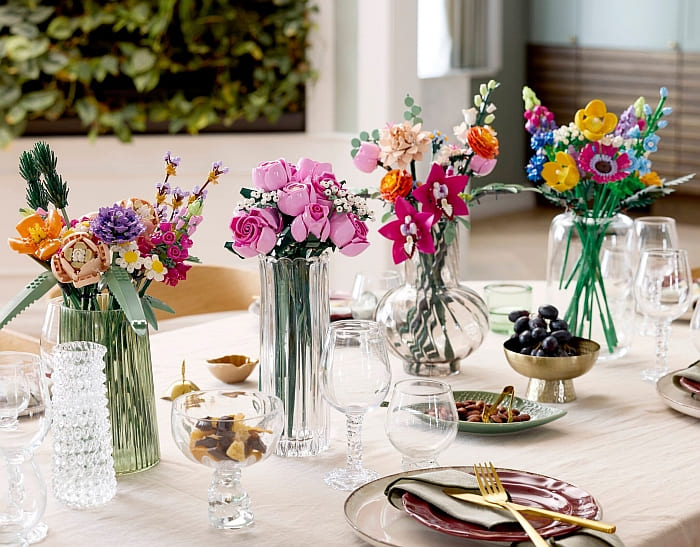 There is one new LEGO Botanicals set, the pretty #10374 LEGO Botanicals Bouquet of Pink roses featuring 12 pink roses at various stages: 4 roses in full bloom, 4 blossoming roses, and 4 rosebuds. The price is $59.99. Available at the LEGO Botanicals section of the Online LEGO Shop.
