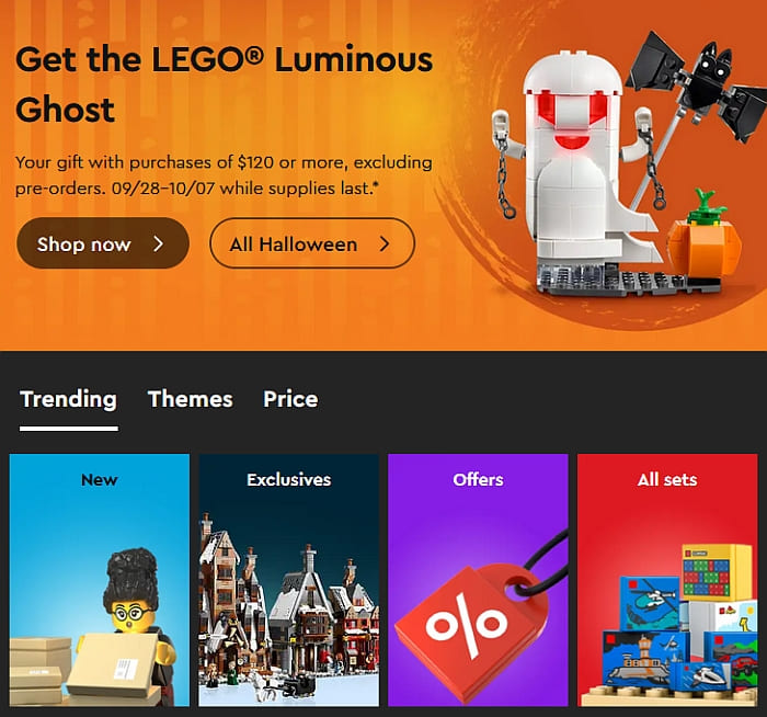 You will get the #40772 LEGO Celebration Series: Luminous Ghost free with purchases of $120 or more. The ghost comes with a light-brick, and his eyes and mouth light up! This offer is valid until October 7th at the Online LEGO Shop.