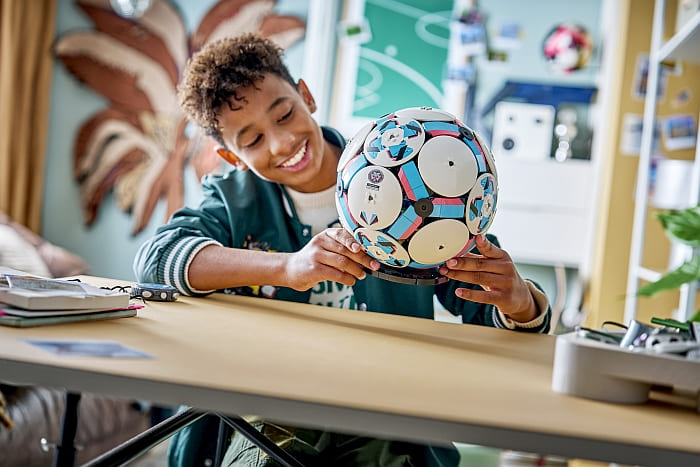 Kick off your creativity with the #43019 LEGO Editions Football – 3D Display Model! Packed with awesome details, this building set lets fans create an almost 1:1 LEGO football based on the size 5 ball used in official matches. This collectible DIY display model includes LEGO Technic elements to achieve a rounded shape, and the outside of the ball features 6 stylish deco discs, while inside there’s an exciting mini stadium celebration scene waiting to be discovered. You can press the button and watch the moment the football player figures celebrate a win, with fireworks popping off behind the stage. Other fun stadium details include a small golden trophy in the center and big screens. Set contains 1,498 pieces. Price: $129.99. Available starting March 1st at the LEGO Editions section of the Online LEGO Shop.