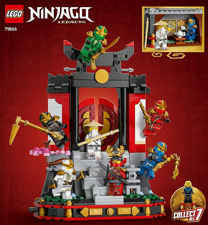 The #71866 LEGO Ninjago Ninja Character Display shows a stunning monastery gate display made of 447 pieces that features 7 iconic minifigures from Season 1, plus the exclusive collectible Elemental Master of Lightning. The set is the perfect centrepiece for showcasing ninja heroes that are loved by many, including an opening gate, a cherry blossom tree, a tearoom decorated with stickers, and more. Available now at the LEGO Ninjago section of the Online LEGO Shop.