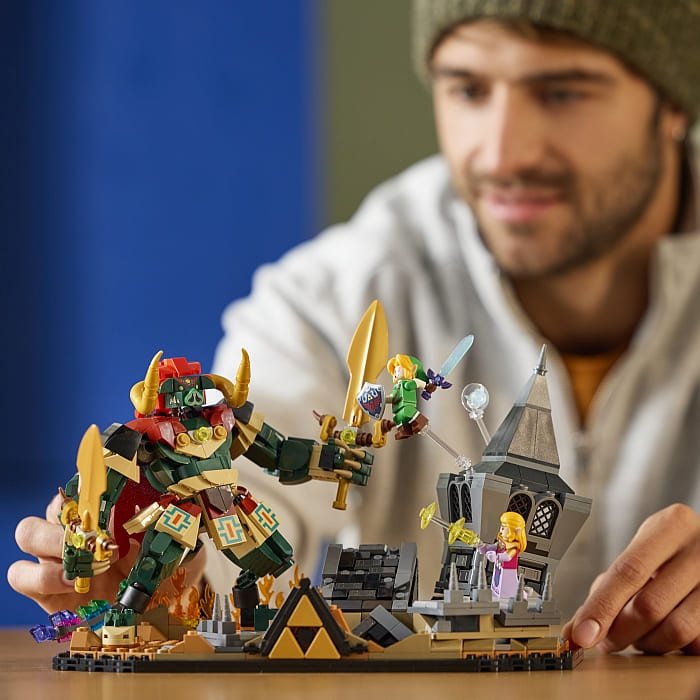 Comprised of 1,003 pieces, the set captures the drama and intensity of the final confrontation with a crumbling castle tower and rubble concealing three Recovery Hearts. At the push of a button, the ruins erupt as the lid mechanic bursts open and Ganondorf rises from the debris, ready for battle.