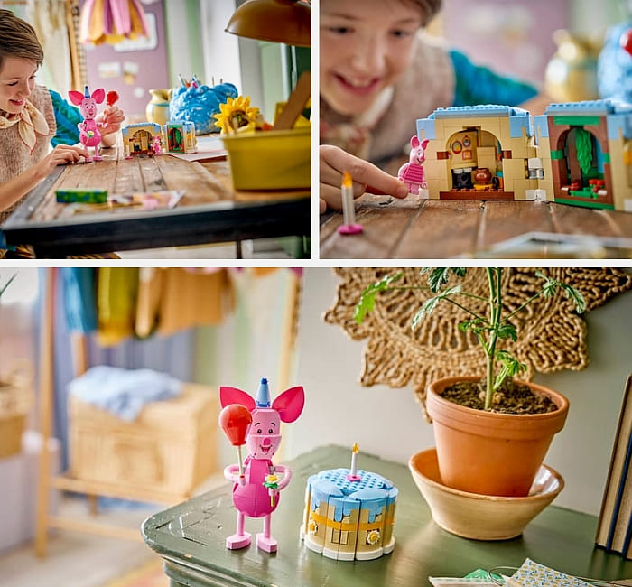 Winnie the Pooh has been featured before in several LEGO DUPLO sets, as well as in the #21326 LEGO Ideas Winnie the Pooh set from three years ago. This time, both characters are brick-built with movable body parts and various accessories. Pooh’s “Hunny” pot opens to reveal two rooms and holds a Winnie the Pooh minifigure and Eeyore. Piglet’s cake also opens to reveal Winnie the Pooh’s house on one side, the Hundred Acre Wood on the other, and features a Piglet minifigure. This year celebrates the 100th anniversary of these beloved characters, and these sets are a perfect way to re-immerse yourself in their world. Winnie the Pooh will be available in March, and you can already pre-order Piglet at the LEGO Disney section of the Online LEGO Shop.