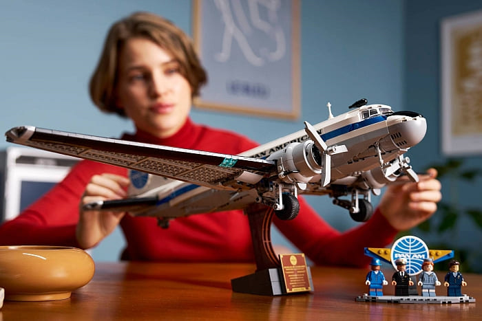 The collectible model invites builders to journey back into the golden age of air travel, recreating the legendary 1930s twin-engine aircraft that helped shape commercial aviation. With 1,903 pieces, the set captures the DC-3’s unmistakable silhouette and includes an authentically detailed cockpit and passenger cabin, complete with aisle and seating. A standout functional feature is the retractable landing gear, operated via a simple dial.