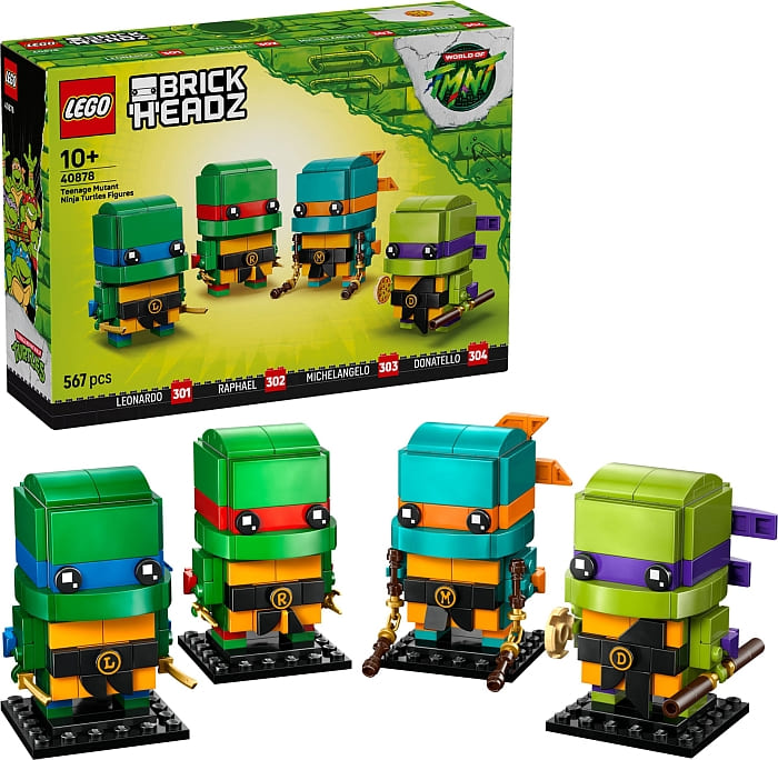 The #40878 LEGO BrickHeadz Teenage Mutant Ninja Turtles Figures set features all four characters in brick-built form for $39.99. Available at the LEGO BrickHeadz section of the Online LEGO Shop.